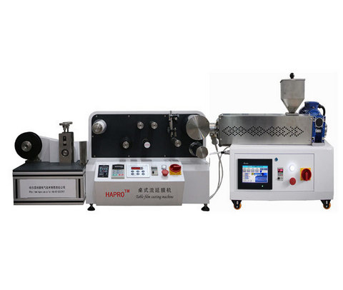 臺式擠出機搭配臺式流延膜機,該套設備採用精密擠出和高性能流延成型技術,適用於PE,PP,PS,ABS,PVC,PET,PC等常用高分子材料的流延膜成型。此設備可以配備視覺系統,實現原料分散性檢測以及凝膠點、魚眼、黑點等薄膜品質檢測等拓展功能,是高精度、高性能薄膜成型的理想實驗設備。